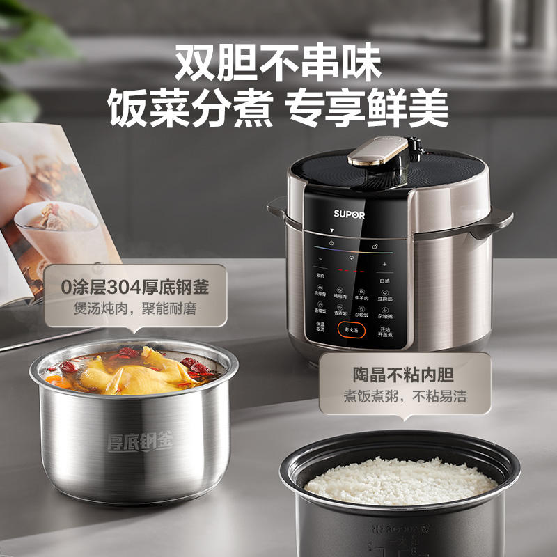 หม้อหุงข้าวไฟฟ้าซูปอร์ 5 ลิตร หม้อในสแตนเลส 0 เคลือบสารกันติด ตั้งเวลาได้ ทำความสะอาดง่าย
