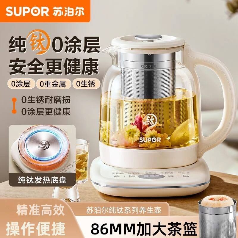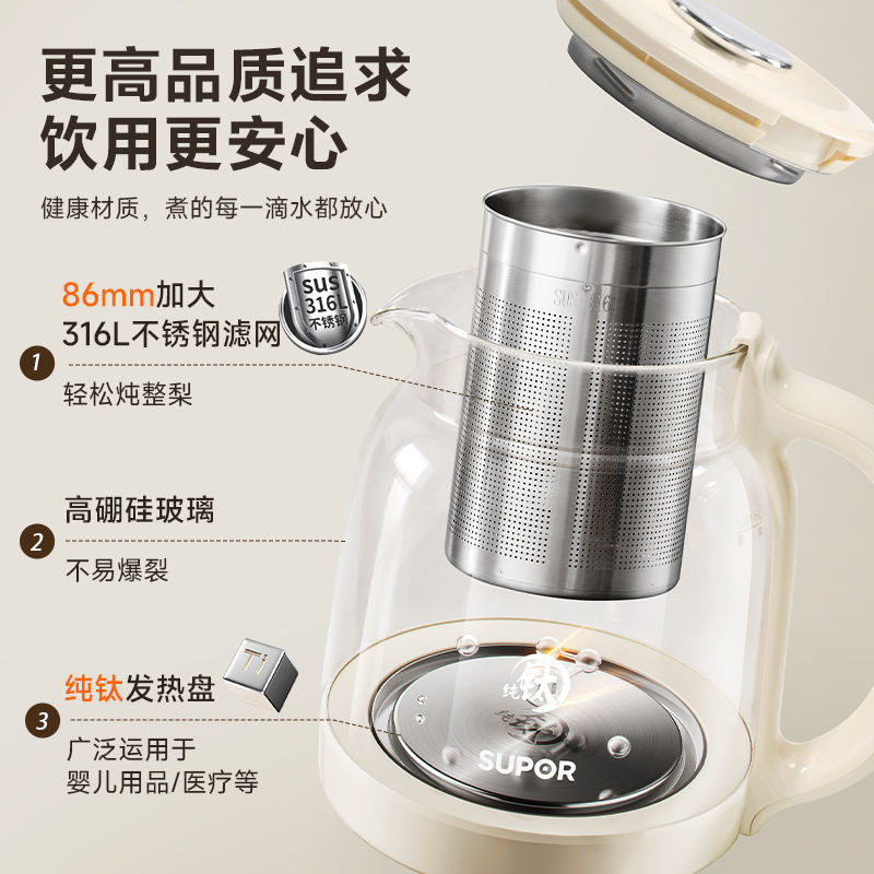 หม้อต้มน้ำแก้วซูปอร์ เฮลท์ พอท 1.5 ลิตร พร้อมระบบควบคุมอุณหภูมิภายในด้วยไทเทเนียมบริสุทธิ์ ปิดอัตโนมัติสำหรับต้มชาและน้ำ