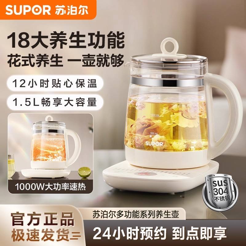 ซูปอร์ เฮลท์ พอทกาต้มน้ำไฟฟ้าแก้วขนาด 1.5 ลิตรพร้อมฟังก์ชั่นอุ่นร้อนสำหรับใช้ในบ้านและสำนักงาน