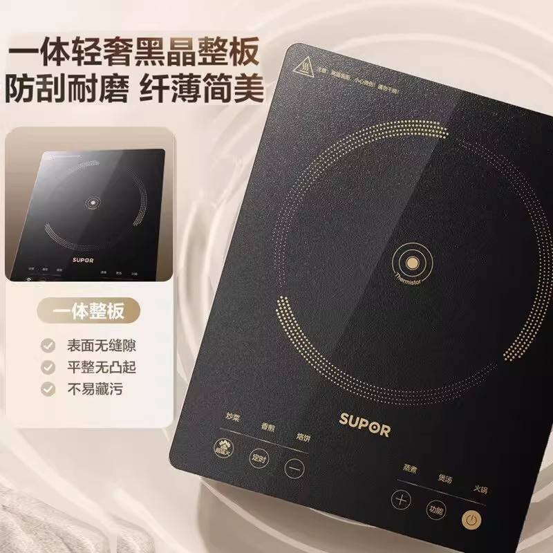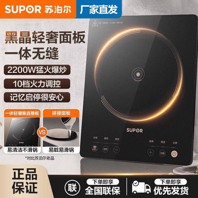 Supor เตาแม่เหล็กไฟฟ้า2200W, เตาแก้วแบบเดี่ยวใช้ในครัวเรือนพลังงานสูงคนทอดหม้อไฟเตาไฟฟ้า C22 IA822D