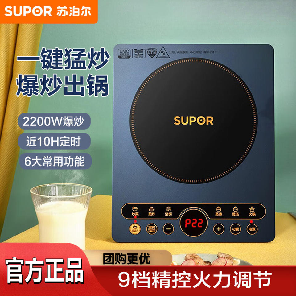 เตาแม่เหล็กไฟฟ้าซูปอร์ 2200W เตาเดี่ยวกำลังไฟสูงกันน้ำสำหรับใช้ในครัวเรือนผัดหม้อร้อนตั้งเวลาได้สแตนเลส
