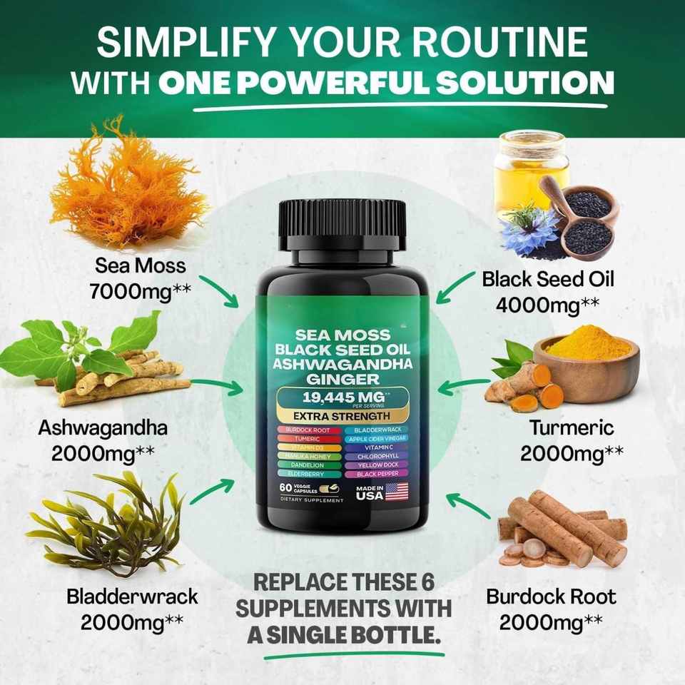 อาหารเสริมแคปซูลสมุนไพรฉลากส่วนตัวทะเลมอส shilajit น้ำมันเมล็ดสีดำ ashwagandha bladderwack ขิงหญ้าเจ้าชู้