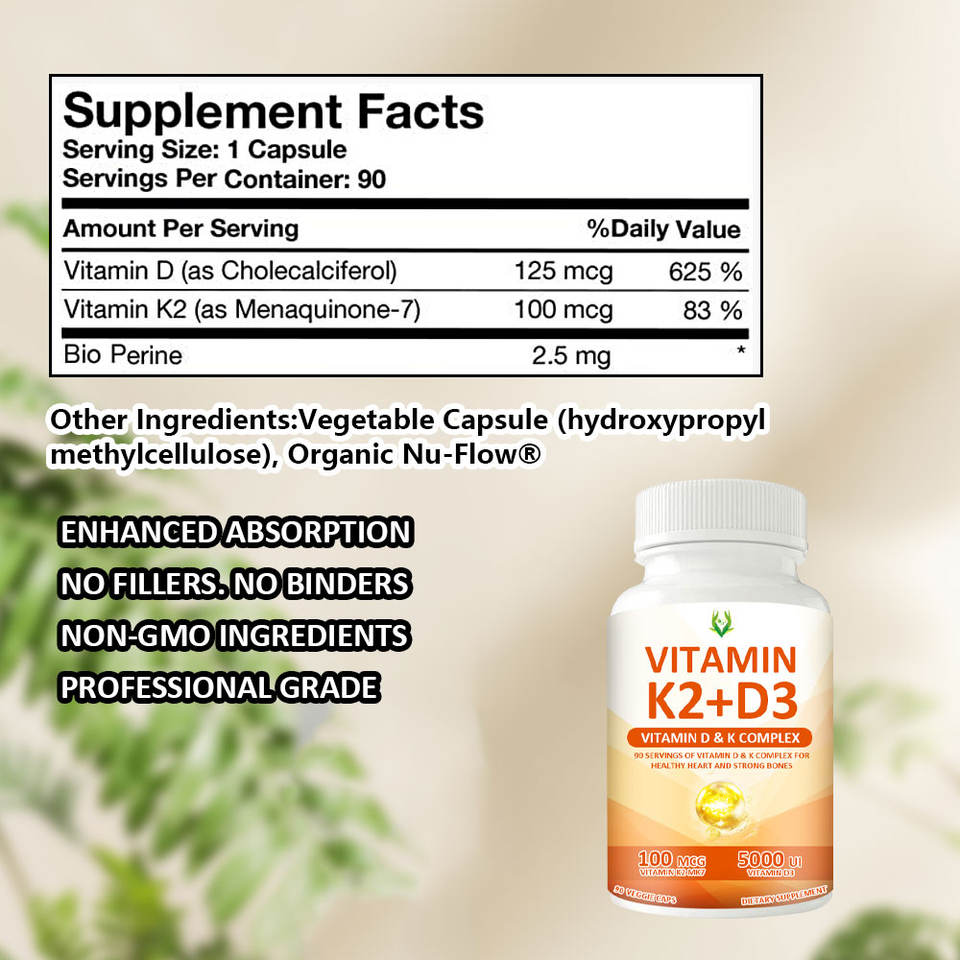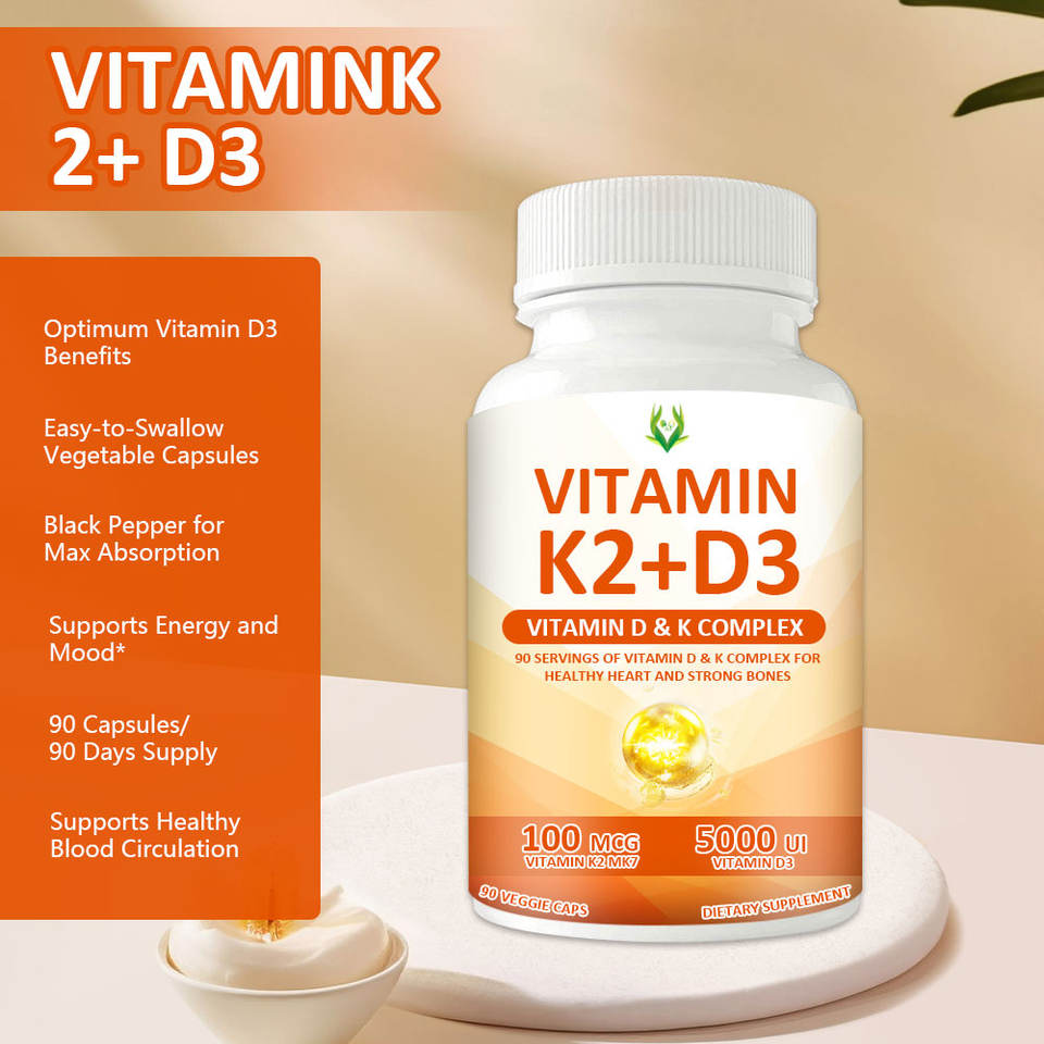 Supplement Manufacturer Vitamin K2 D3 Capsules Support Healthy Heart Strong Bones Vitamin D & K Complex Products