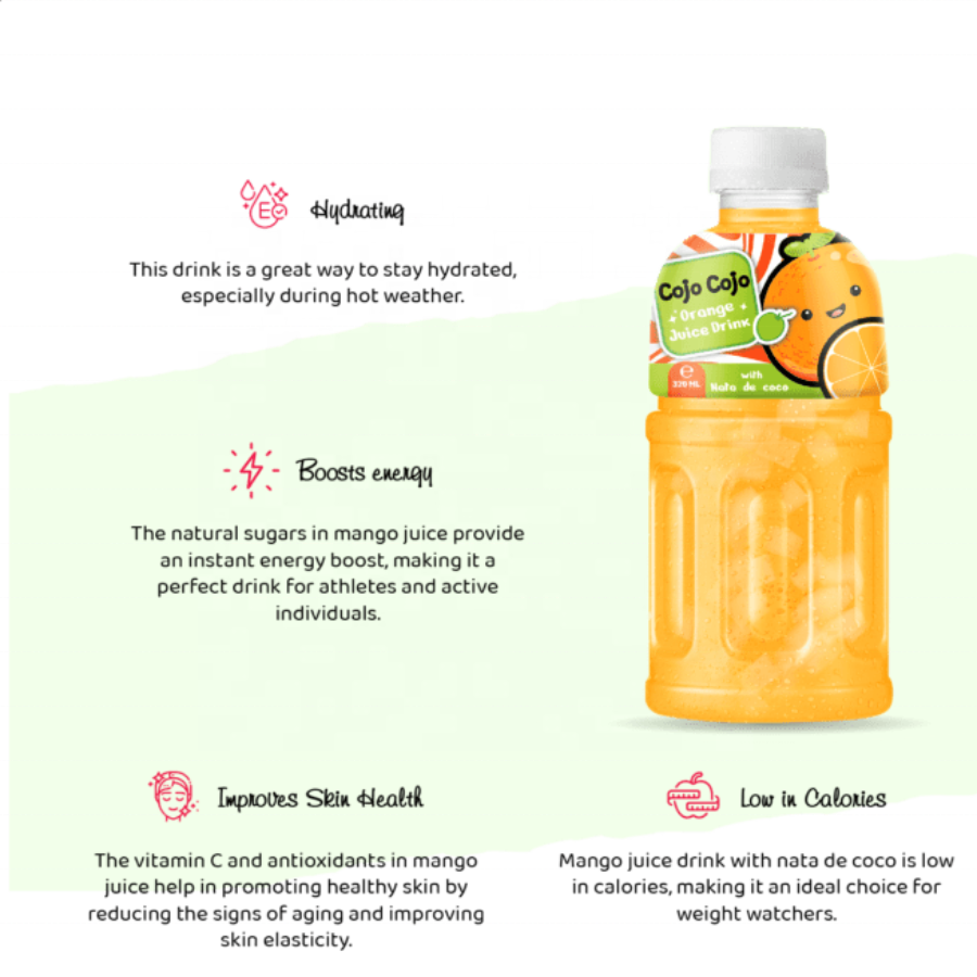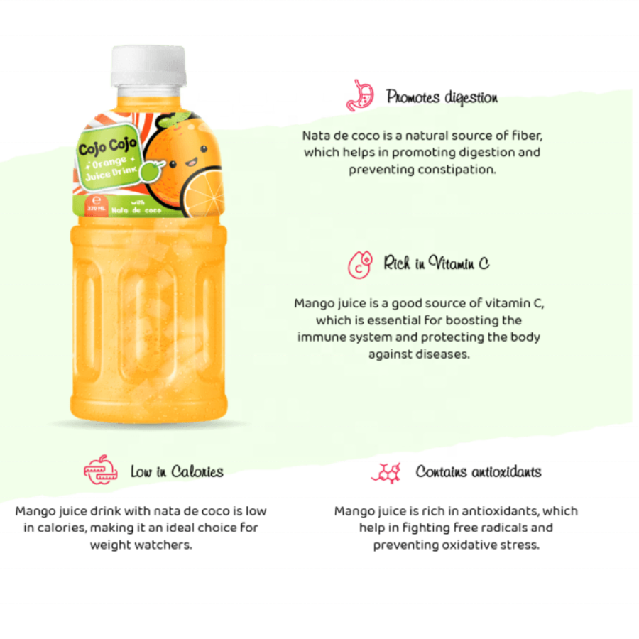 Product name:Cojo Cojo Orange Juice Drink With Jelly Coconut