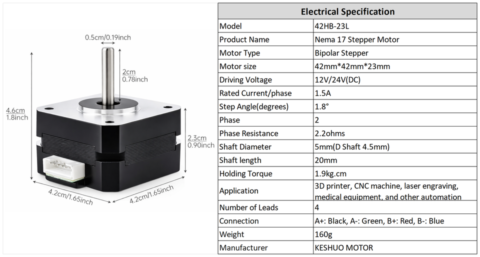 ประเภทมอเตอร์:สเต็ปมอเตอร์ Nema 17