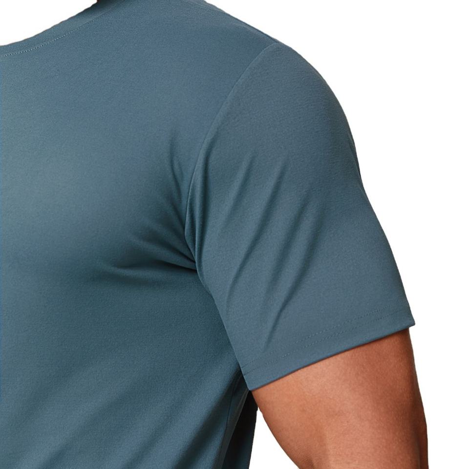เสื้อยืดออกกำลังกายแขนสั้นผ้าโพลีเอสเตอร์ผสมสแปนเด็กซ์ แห้งเร็ว สำหรับวิ่ง ฟิตเนส ยิม ใส่สบาย รับสกรีนโลโก้ตามแบบ