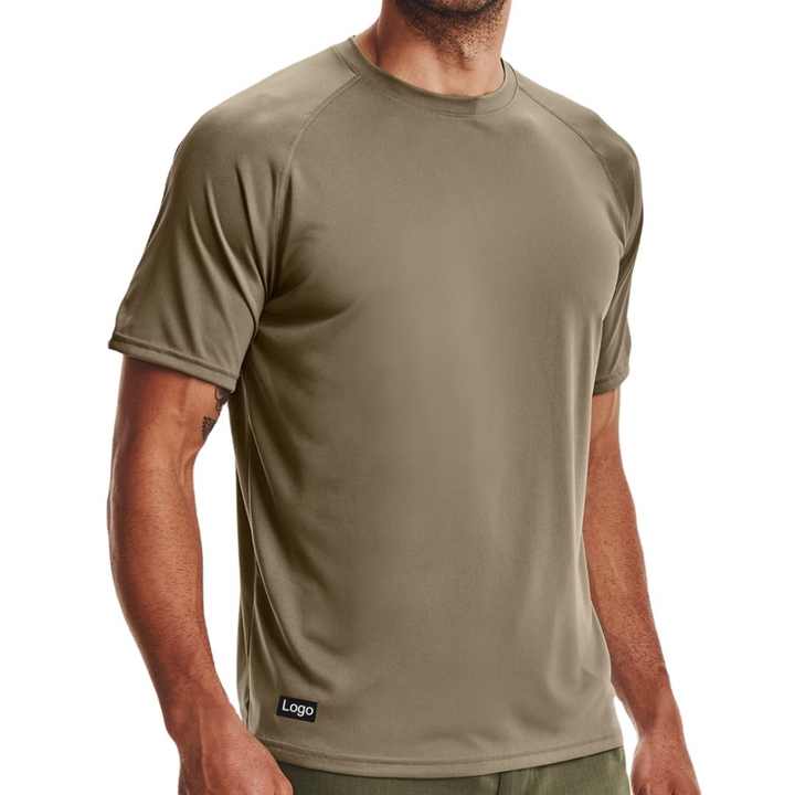 เสื้อยืดแขนสั้นผู้ชายคอกลม ผ้าโพลีเอสเตอร์ 100% แห้งเร็ว น้ำหนักเบา สำหรับออกกำลังกาย รับสกรีนโลโก้ตามแบบ