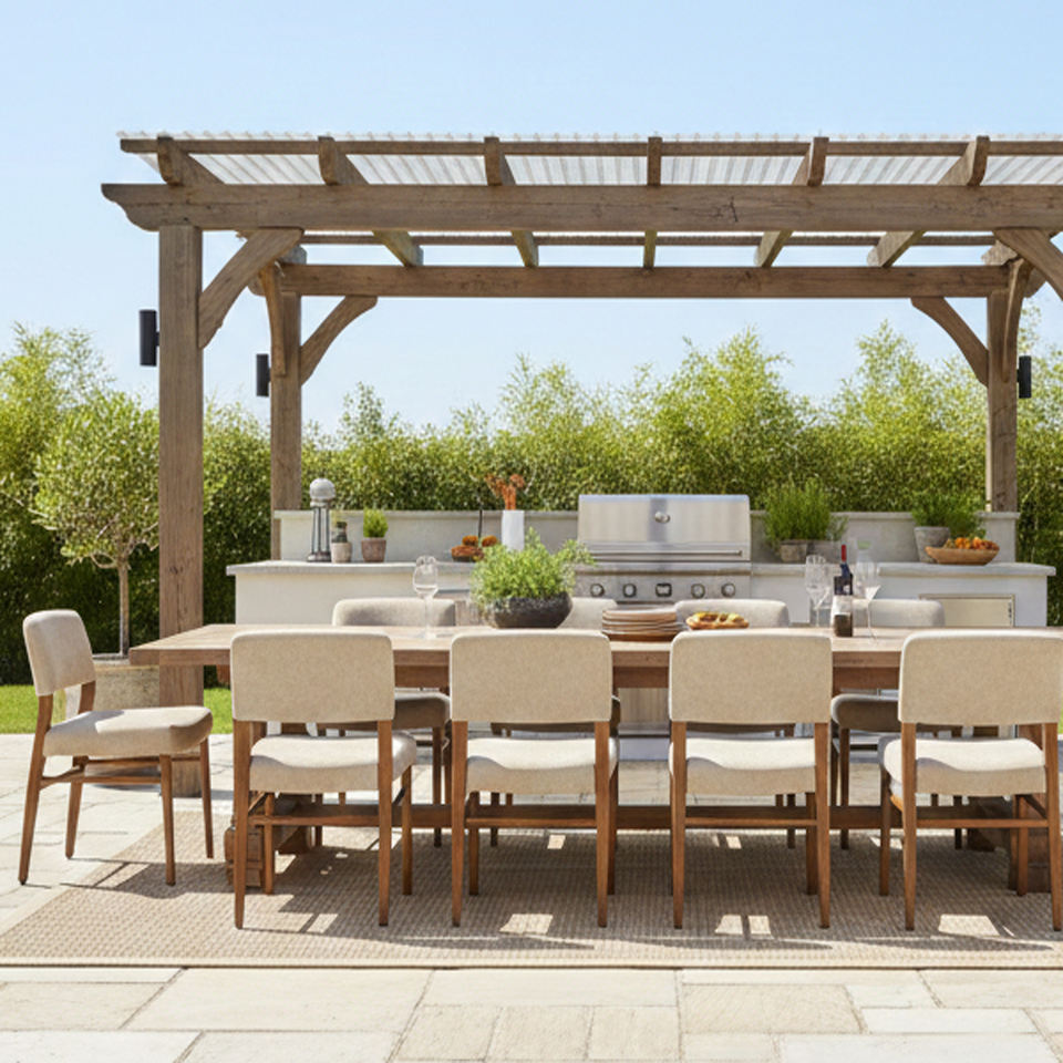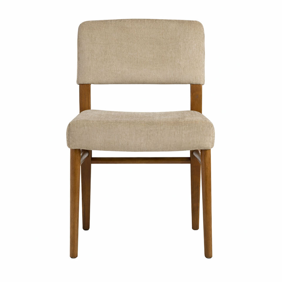 เก้าอี้รับประทานอาหารไม้สักทำมือเกรดซัพพลายเออร์ สไตล์มิดเซ็นจูรี่ โมเดิร์น มูโย พร้อมเบาะนั่งหุ้มผ้าอย่างดี สำหรับใช้ในห้องครัว