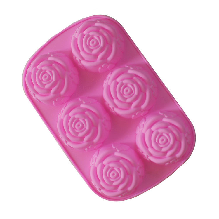 แม่พิมพ์ซิลิโคนคุณภาพสูงสำหรับทำขนม 6 ช่อง รูปดอกกุหลาบ 3 มิติ สำหรับทำขนมเค้ก พุดดิ้ง เยลลี่ ผลิตในจีน