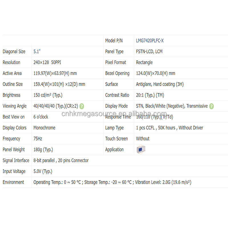 LMG7420PLFC-X จอ LCD ความละเอียด5.1นิ้ว240*128โมดูลผลึกเหลวจอแสดงผล TFT LCD