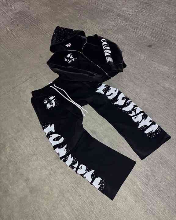 ชุดวอร์มผ้าคอตตอนสไตล์สตรีทแวร์สำหรับผู้ชายชุดเสื้อมีฮู้ดแบบมีซิปและกางเกงวอร์มมีกระดุมสามเม็ด