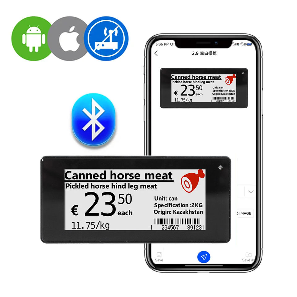 ป้ายแสดงหน้าจอด้วยหมึกอิเล็กทรอนิกส์สำหรับซูเปอร์มาร์เก็ตป้ายสำหรับชั้นวางสินค้าอิเล็กทรอนิกส์พร้อมป้ายราคาดิจิทัลบลูทูธ