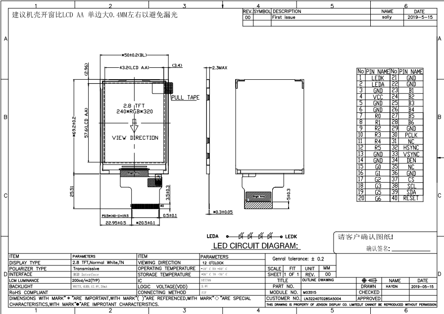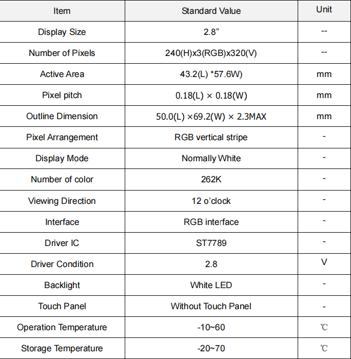 จอแสดงผลโมดูล LCD IPS RGB ขนาด 2.8 นิ้ว ความละเอียด 240*320 รุ่น ST7789