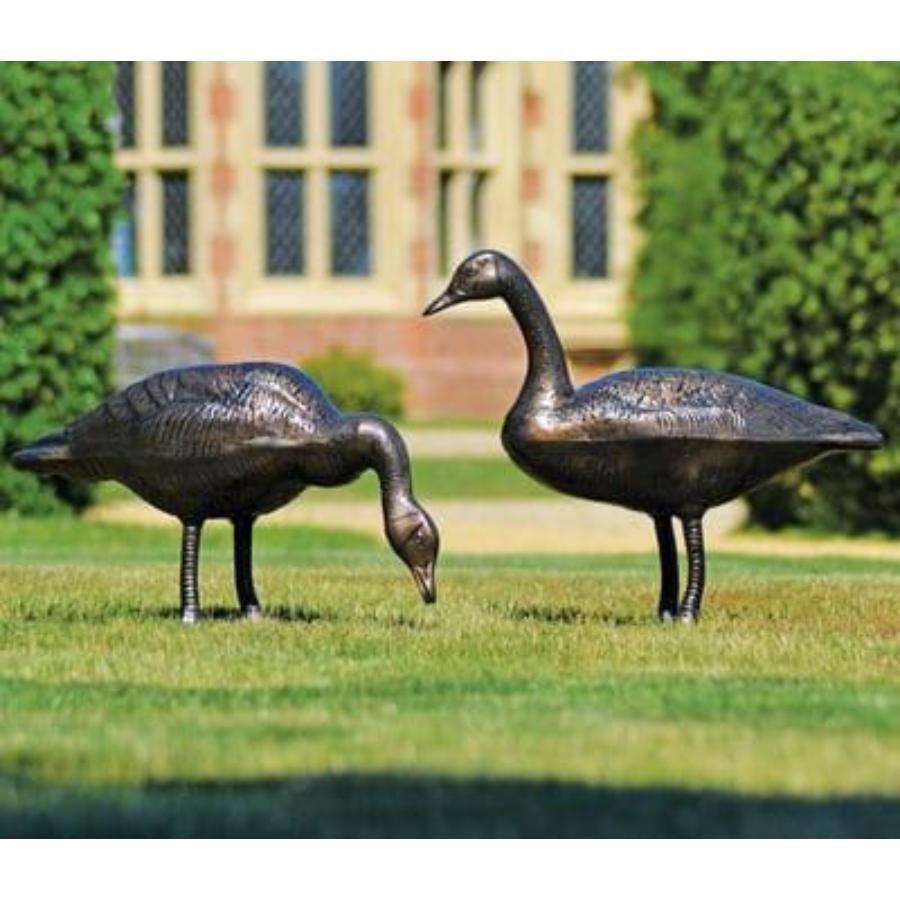ชุดประติมากรรมหงส์เหล็กหล่อสไตล์วินเทจ อุปกรณ์ตกแต่งสวน ประติมากรรมนกกระเรียนสีบรอนซ์ยอดนิยมสำหรับตกแต่งภายนอก