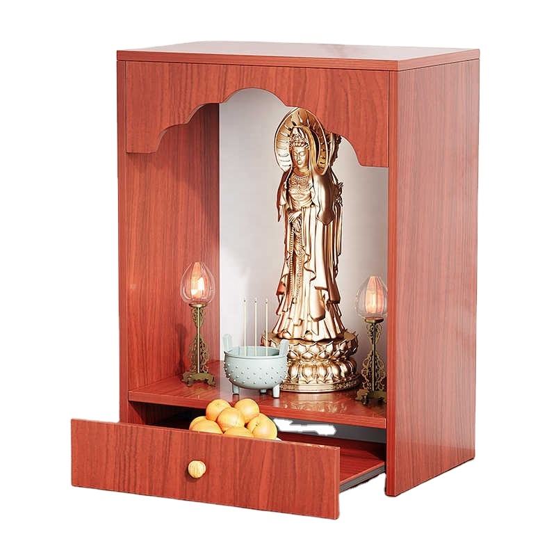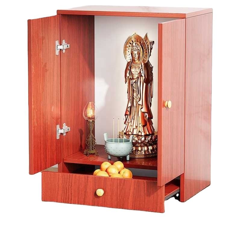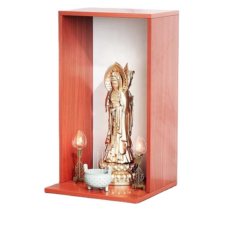 แท่นบูชาพระพุทธเจ้าแห่งความมั่งคั่งรูปปั้นพระพุทธเจ้ากวนอิมพระโพธิสัตว์ที่ประดิษฐานอยู่ในแท่นบูชาที่ถวาย