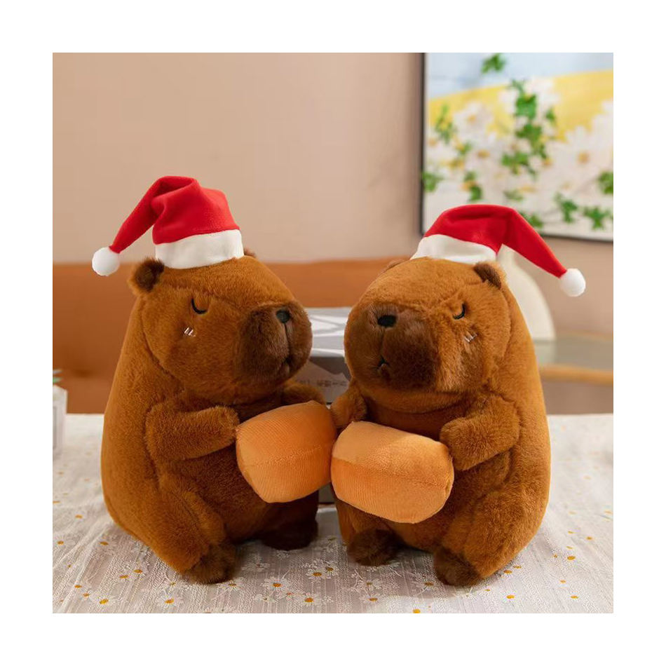 คาปิบาร่ามินิตุ๊กตาแมวน่ารักนุ่มนิ่มของเล่นแมวมีเสียงออกแบบได้ตามที่ต้องการ