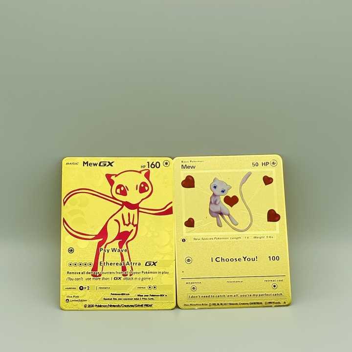 รองรับการ์ดเกมโลหะสแตนเลสสตีลสีทองแบบกำหนดเองได้ ภาษาอังกฤษ เยอรมัน ฝรั่งเศส การ์ดสะสมโปเกมอนสีทอง