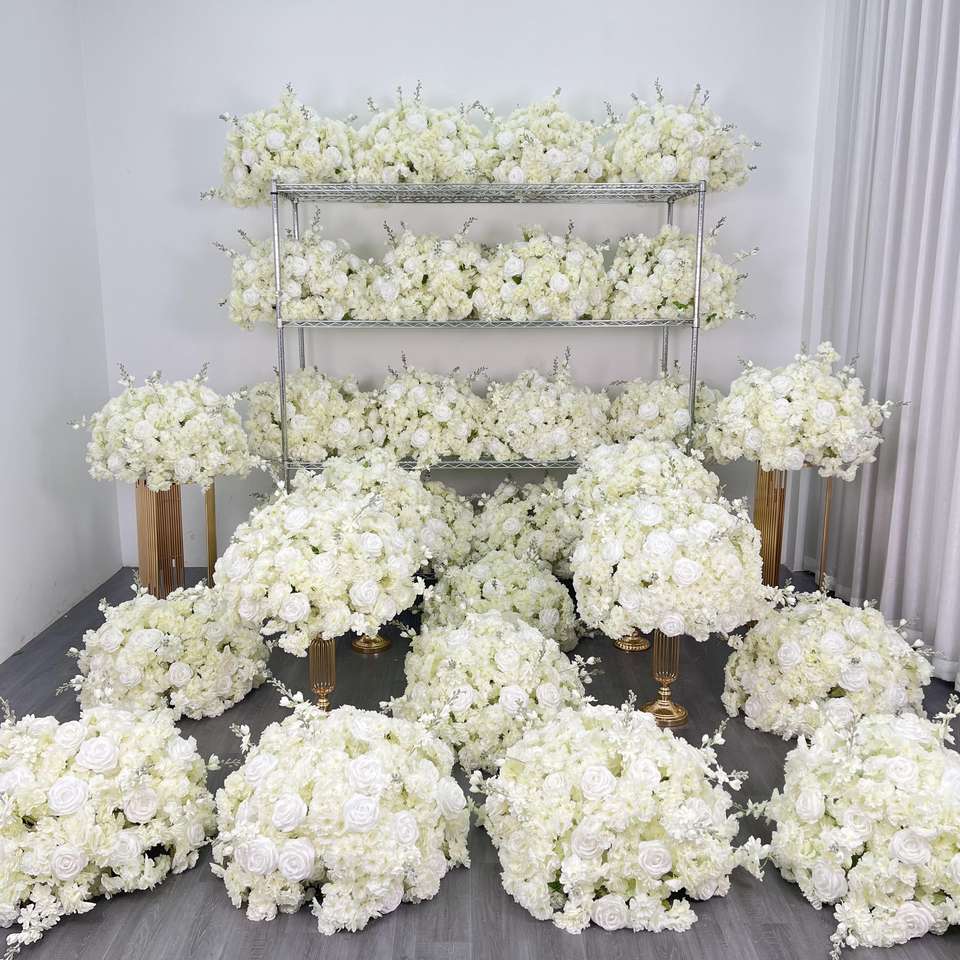 ดอกกุหลาบประดิษฐ์ขนาดใหญ่ 50 ซม. 60 ซม. 70 ซม. 80 ซม. สำหรับจัดโต๊ะงานแต่งงาน ดอกไม้ประดับกลางโต๊ะ ดอกไม้สีขาวทำจากผ้าไหม