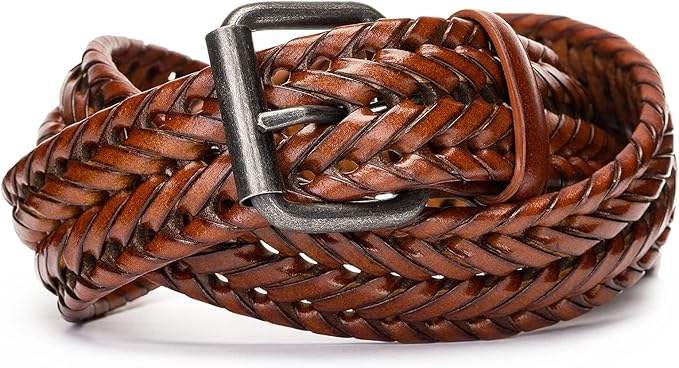 เข็มขัดถักสำหรับผู้ชายเข็มขัดหนังผ้าคอตตอนถักแบบบางยืดหยุ่นได้ตามต้องการ