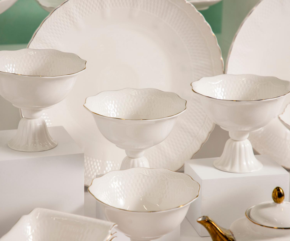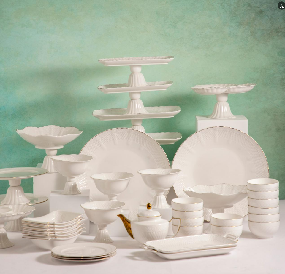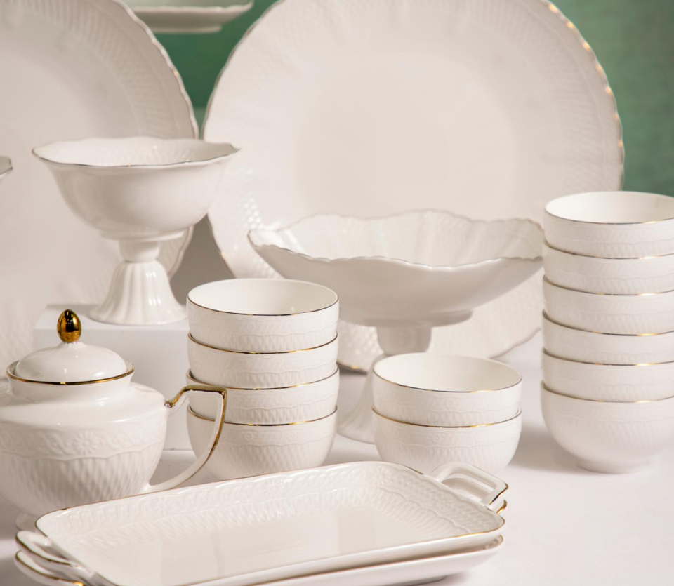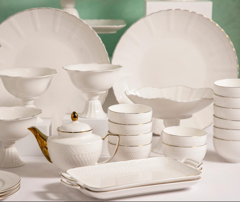 Support Customization 16/18/24Pcs Stocked Gold Gilded Embossed Porcelain Enameled Eco-Friendly Durable Modern Luxury Dinnerware