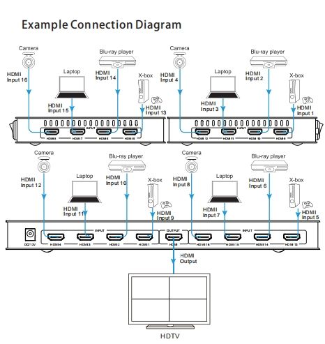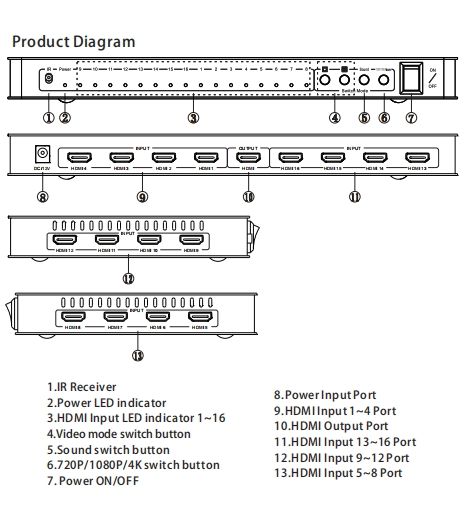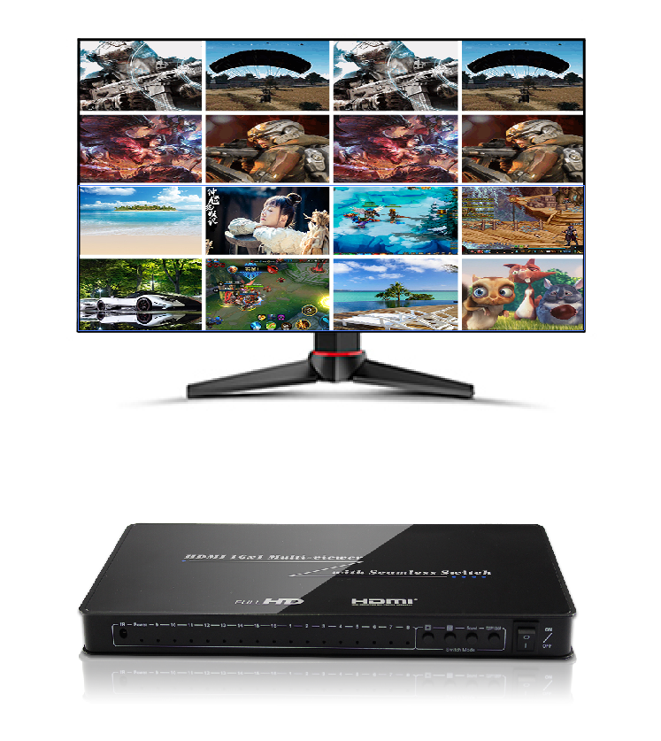 สวิตช์ HDMI 16x1 HDMI 16พอร์ตตัวเลือกสวิตช์วิดีโอ4K พร้อมรีโมทควบคุมไร้สาย