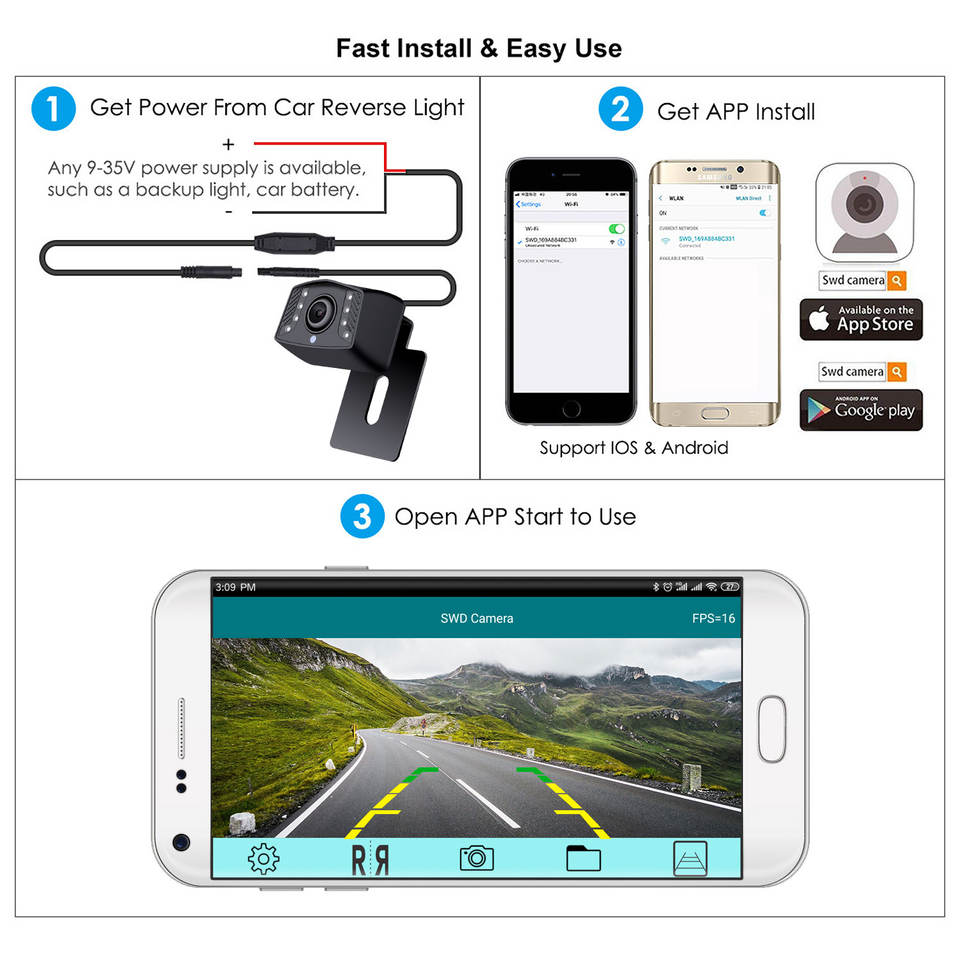 สนับสนุน iPhone และ Android ไร้สายย้อนกลับ Wifi โทรศัพท์ Ipad APP รถสำรองที่จอดรถคืนวิสัยทัศน์กล้องรถไร้สาย