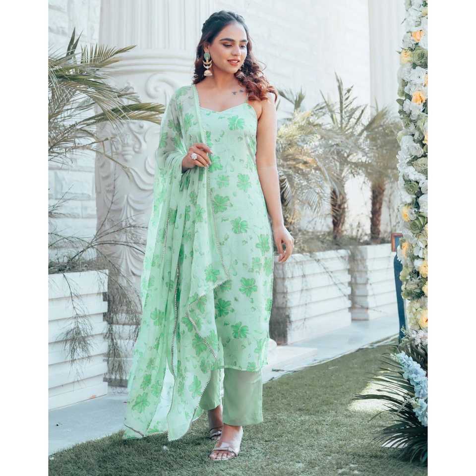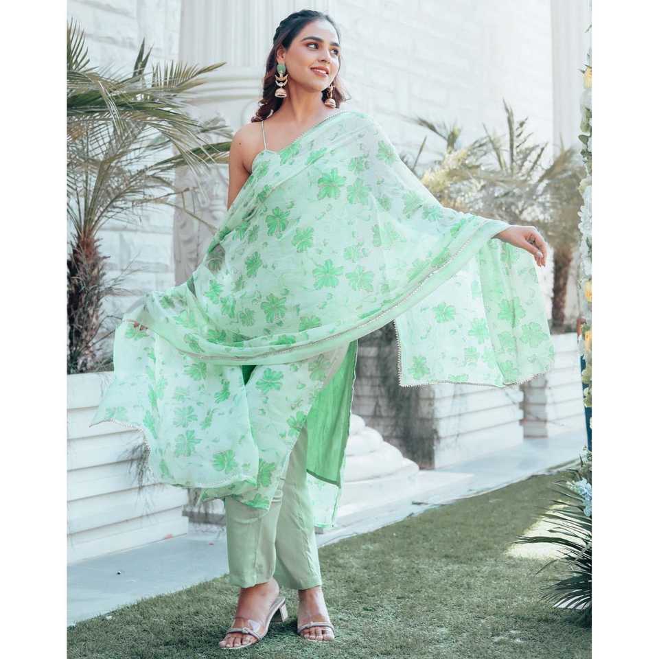 ชุดสูทผ้าชีฟองสีเขียวพิมพ์ลายดอกไม้ ระบายอากาศได้ดี ไซส์ XS สำหรับผู้หญิง ยี่ห้อ Surat