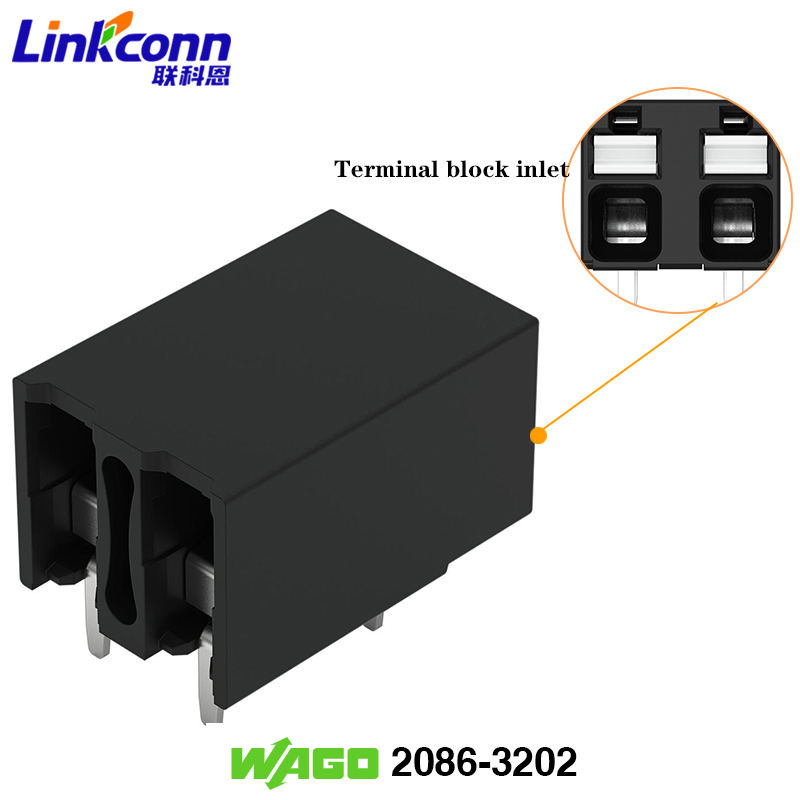 ขั้วต่อ2086-3202 wagos 2เสาสีดำ THR PCB เทอร์มินัลบล็อกขั้วต่อปุ่มกดสำหรับหัวแร้งระยะห่าง5มม.
