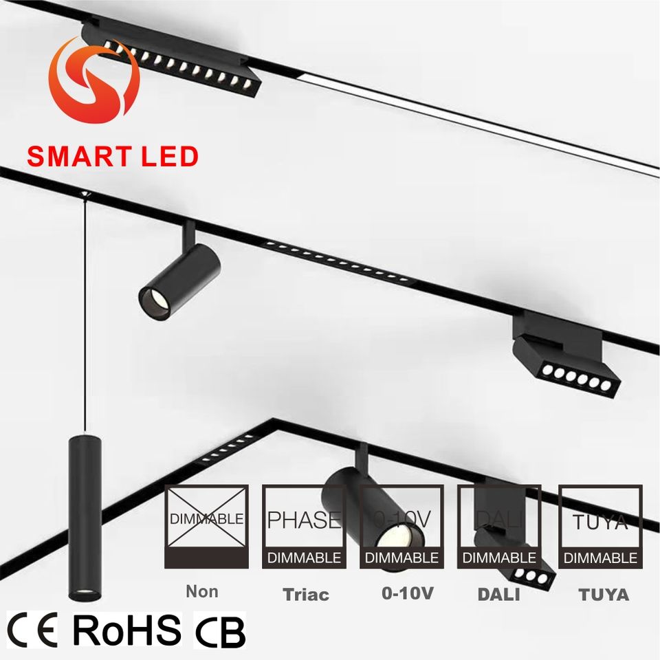 ไฟติดรางแม่เหล็กแบบฝังพื้นผิวบางเฉียบ 48v ปรับความสว่างได้ LED Mini COB Spotlight รางขนาด 20 มม. ระบบรางแบบเส้นตรง มุมลำแสง 24/36 องศา