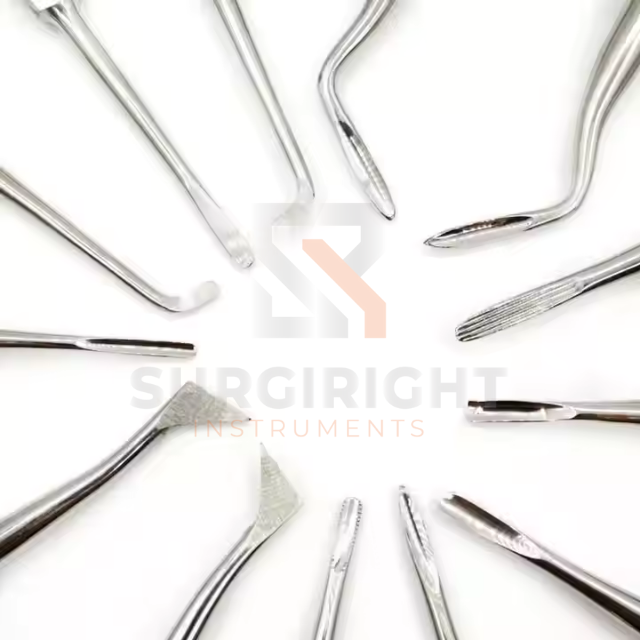 Surgiright ลิฟต์สแตนเลสแบบโค้งยกรากฟัน13ชิ้นชุดลิฟต์สำหรับถอนฟัน