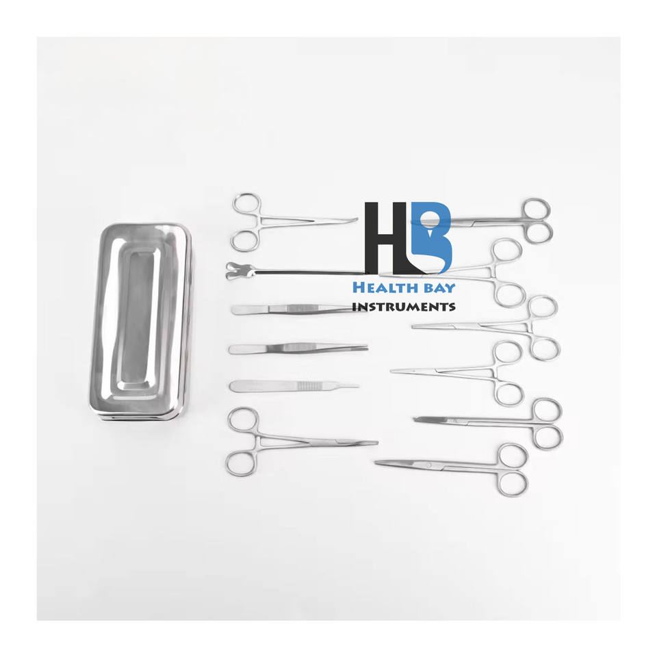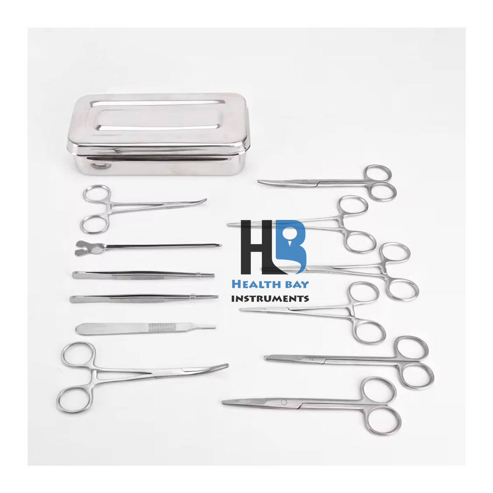 ชุดเครื่องมือผ่าตัดขั้นพื้นฐานสำหรับการผ่าตัดเล็ก 13 ชิ้น พร้อมกล่อง โดย Health Bay Instruments
