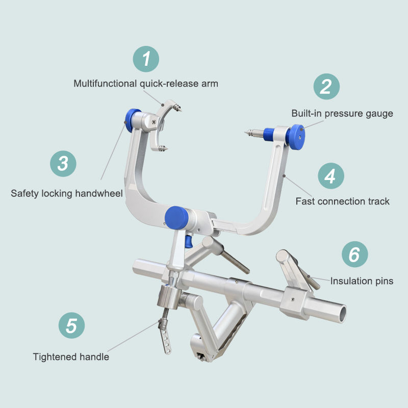 โครงยึดศีรษะแบบสามจุดทำจากคาร์บอนไฟเบอร์สำหรับศัลยกรรม พร้อมที่พักศีรษะ โครงยึดศีรษะแบบแมนนวล เครื่องมือผ่าตัดระบบประสาท