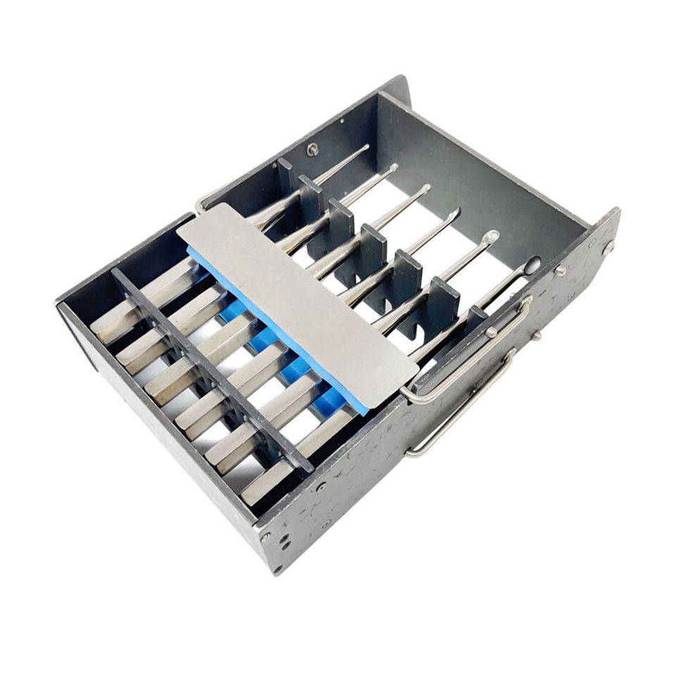 ชั้นวางฆ่าเชื้อและจัดเก็บเครื่องมือผ่าตัดสแตนเลสแบบแมนนวล พร้อมช่องใส่ที่แม่นยำเพื่อการจัดเก็บที่ปลอดเชื้ออย่างมั่นใจ