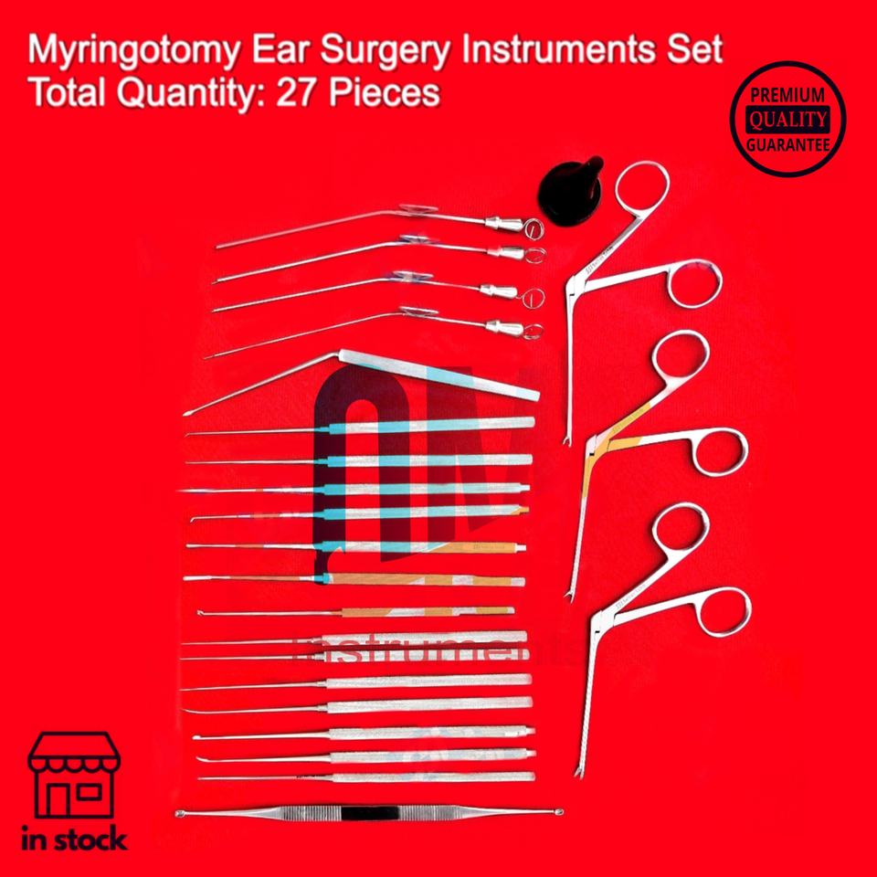 ชุดผ่าตัดหูชั้นกลาง 27 ชิ้น ทำจากเหล็กกล้าไร้สนิม ได้รับการรับรองมาตรฐาน CE สามารถนึ่งฆ่าเชื้อและนำกลับมาใช้ใหม่ได้ คุณภาพดีเยี่ยม สำหรับการผ่าตัดหูชั้นกลาง