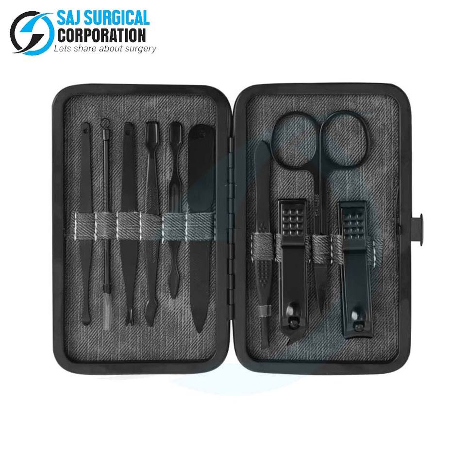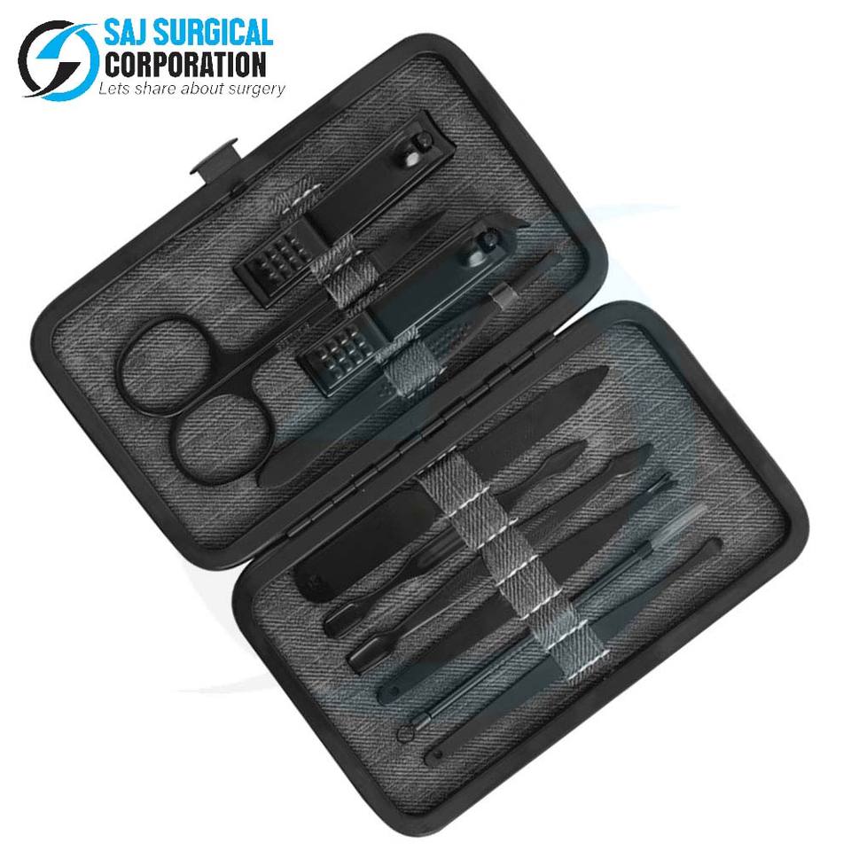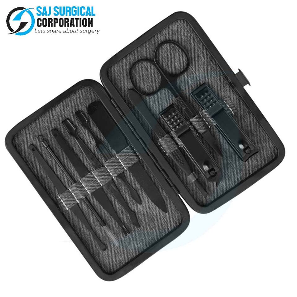 ชุดอุปกรณ์ทำเล็บมือในการผ่าตัดเกรด10ชิ้นมีดีไซน์สีดำเยอรมันเครื่องมือฆ่าเชื้อสำหรับร้านเสริมสวยมืออาชีพและการใช้ podiatry