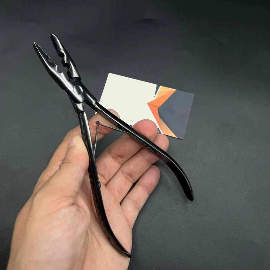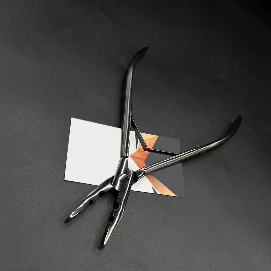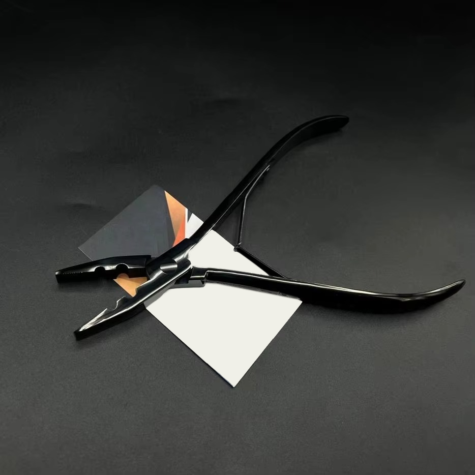 คีมต่อผมสแตนเลสเกรดผ่าตัด พร้อมโลโก้สั่งทำ สีดำด้าน กำลังเป็นที่นิยม