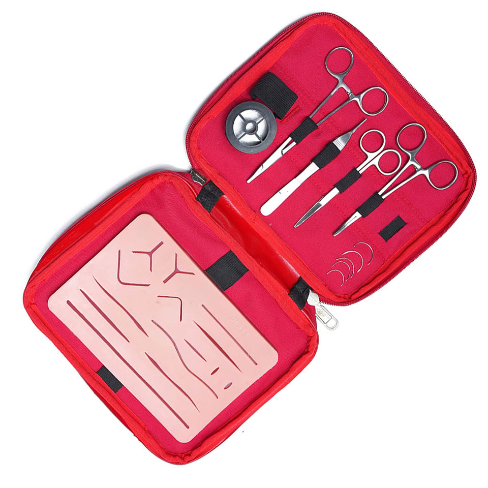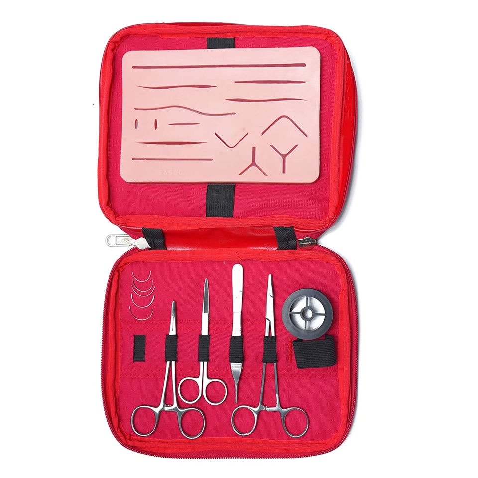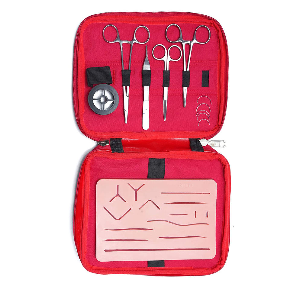 ชุดผ่าตัดปากคีบกรรไกรเหล็กเยอรมัน7ชิ้นชุดผ่าตัดคีมสำหรับผ่าตัดพร้อมกล่องซิปและแผ่นเย็บ