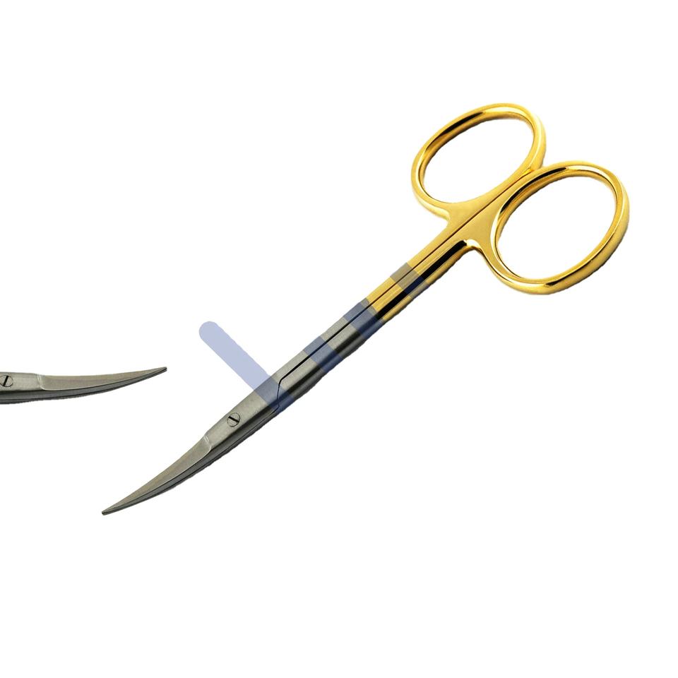กรรไกรตัดเยื่อแก้วตาแบบโค้ง TC ขนาด 11.5 ซม. สำหรับงานผ่าตัดทางทันตกรรม ใช้สำหรับแยกเนื้อเยื่อ ตัดเย็บ ผ่าตัดในห้องปฏิบัติการ ทำจากสแตนเลสสตีล ใช้งานด้วยมือ
