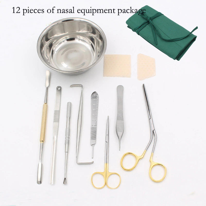 ชุดเครื่องมือผ่าตัดจมูก 27 ชิ้น, คีมจับกระดูกจมูกเทียม, ไม้พายจมูก สแตนเลส สำหรับศัลยกรรมตกแต่ง
