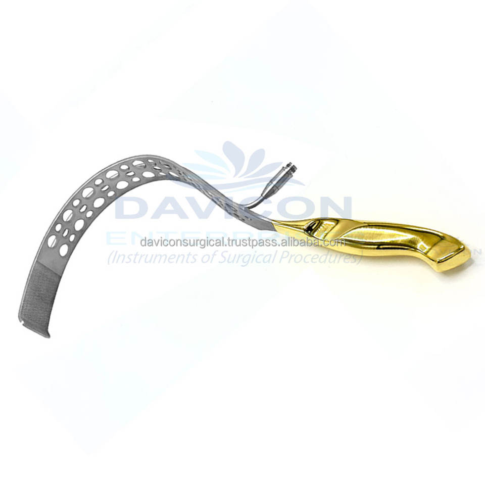 Thorlakson ผ่าตัดสแตนเลส, retractor ช่องท้องใยแก้วนำแสง, ใบมีดโค้งแบบมีร่องขนาด40มม. x 170มม., 34ซม.