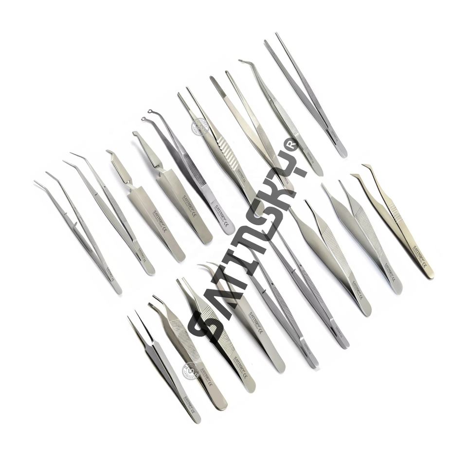 Set of 18 Dental Tweezers Pliers Nursing Cotton & Dressing Forceps
