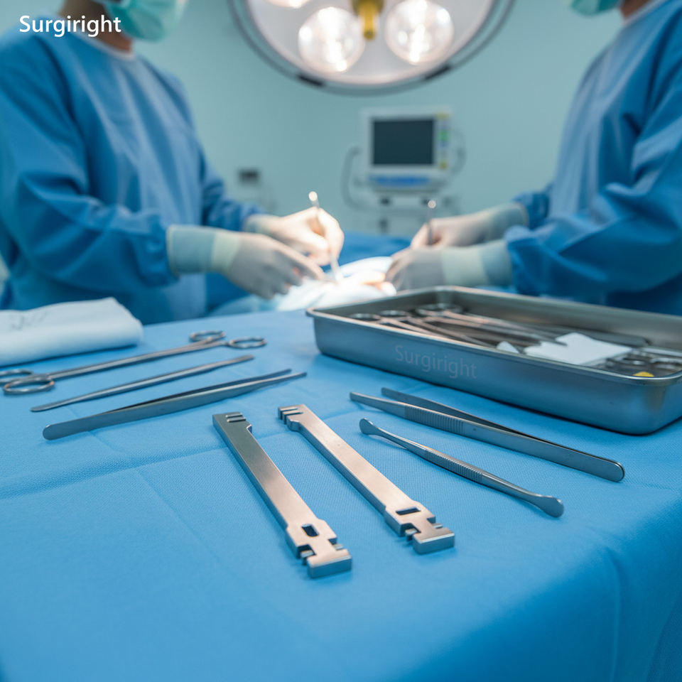 เครื่องมือผ่าตัดกระดูกแบบใช้แรงมือ แผ่นเหล็กสแตนเลส 200 มม. สำหรับดัดและประกอบกระดูก 1 ชุด โดย Surgiright