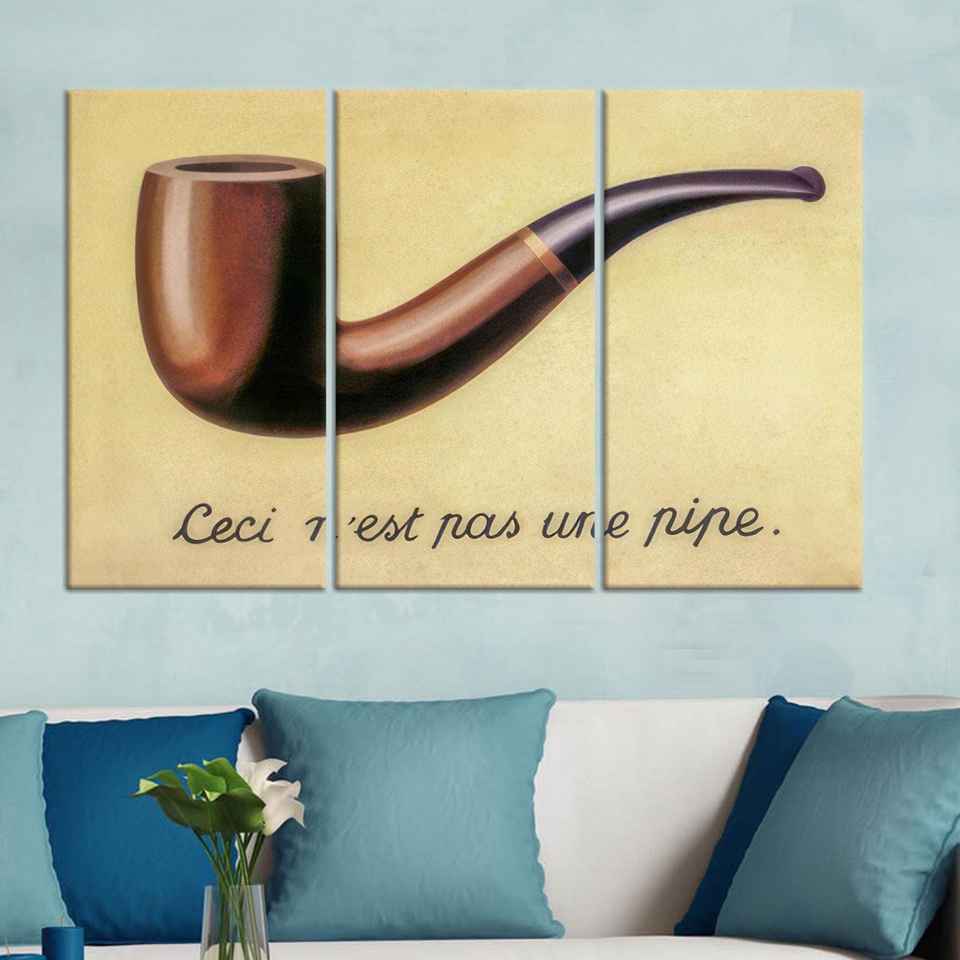 ศิลปะบนผืนผ้าใบแนวปรัชญาเหนือสมจริง: Ceci n'est pas une pipe Print,ชุดผ้าใบ 3 ชิ้น