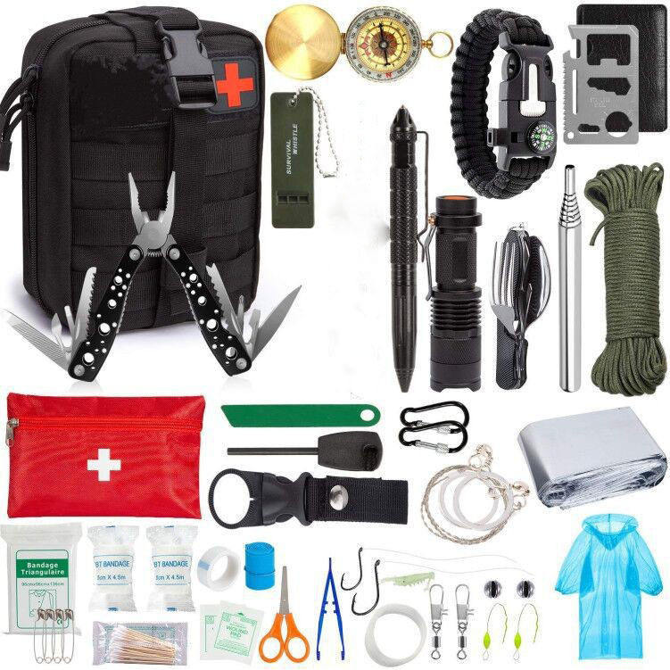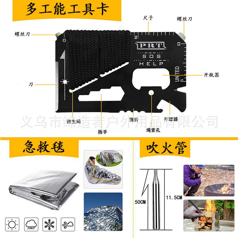ชุดอุปกรณ์เอาตัวรอดกลางแจ้ง อุปกรณ์ฉุกเฉินสำหรับตั้งแคมป์ อเนกประสงค์ ขนาดกะทัดรัด น้ำหนักเบา กันน้ำ สำหรับการเดินป่า ตกปลา