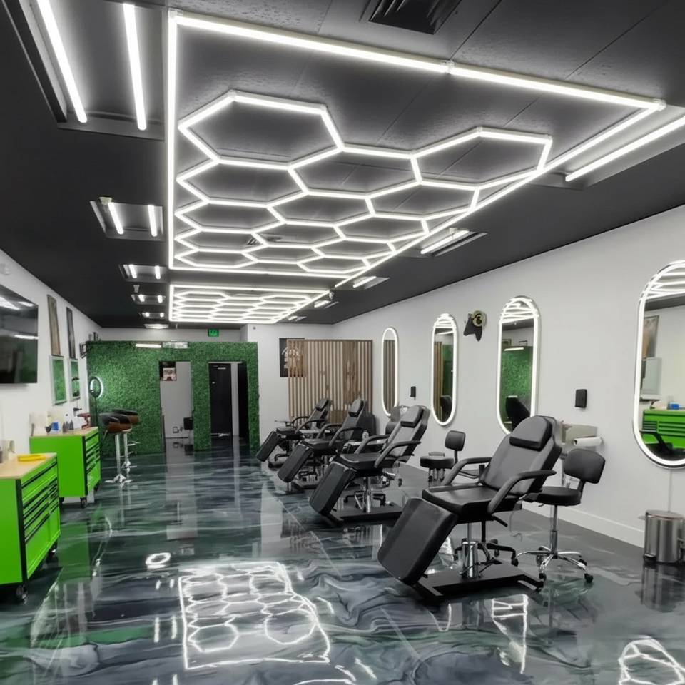 Suspend แผงไฟ LED หกเหลี่ยมแบบแขวนทันสมัยสำหรับร้านตัดผม