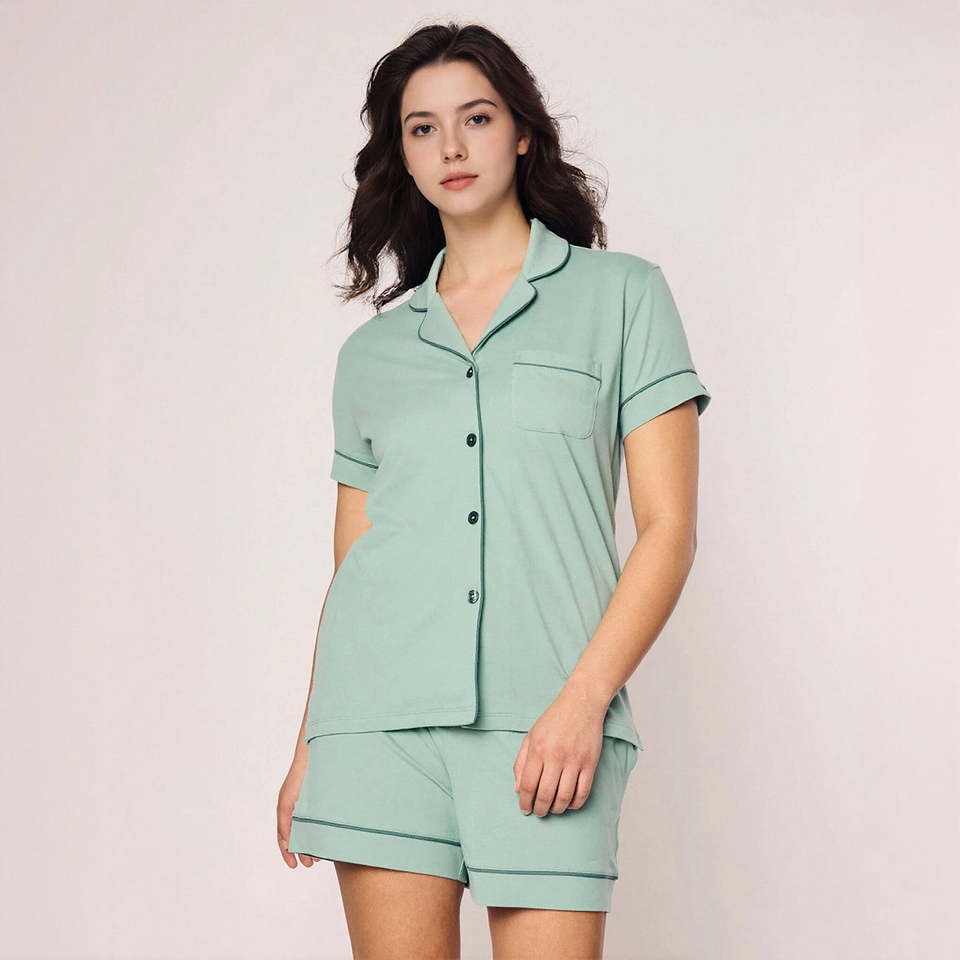 ชุดนอนผ้าซาตินสำหรับผู้หญิง, ชุดนอนผ้าซาตินสองชิ้นทันสมัยสวมใส่สบาย