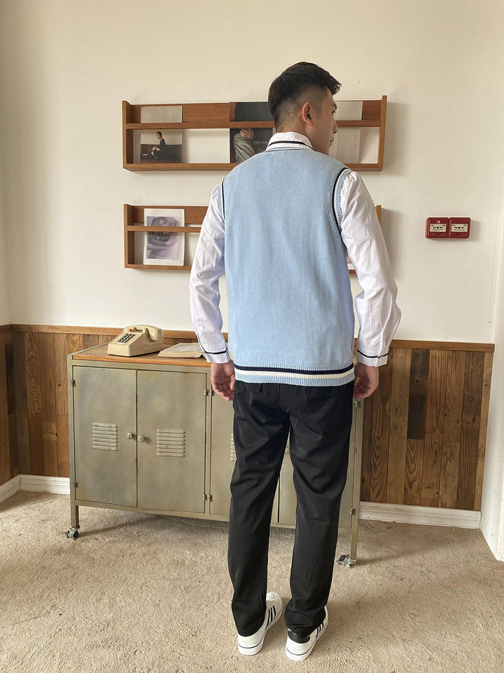 เสื้อกันหนาวแขนกุดสำหรับผู้ชายชุดเครื่องแบบนักเรียนมัธยมปลายออกแบบได้อย่างยั่งยืนเสื้อผ้า