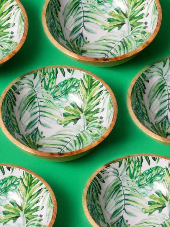 ชามไม้เคลือบลายพิมพ์ งานฝีมือที่ยั่งยืน ผลิตตามสั่ง สำหรับการเสิร์ฟ อาหาร การรับประทานอาหาร และโต๊ะครัวสมัยใหม่