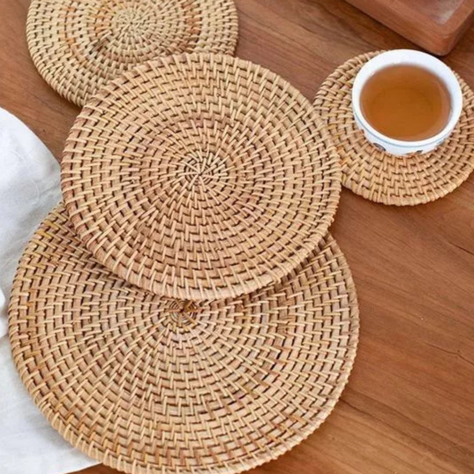 ที่รองแก้วไม้ไผ่หวายทำมือจากวัสดุธรรมชาติ ผลิตในเวียดนาม สำหรับส่งออกขายส่ง