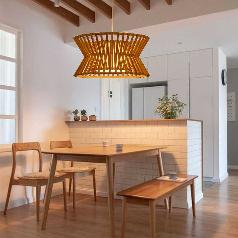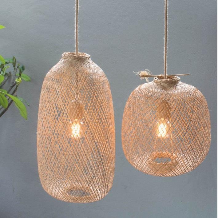 โคมไฟระย้าหวายจากไม้ไผ่แบบมินิมอลลิสต์โคมไฟที่คลุมและเฉดสีแบบทอที่สวยงาม